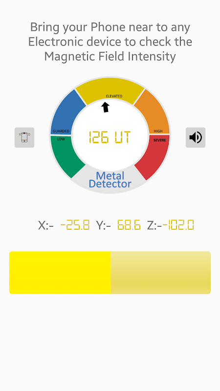 Metal Detector utilizza il sensore del magnetometro per rilevare il campo magnetico dai metalli.