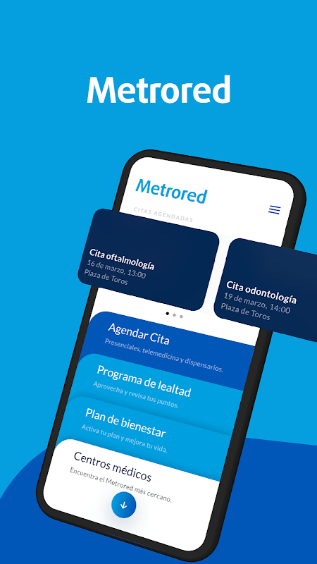 Tutti i vantaggi dei servizi di Metrored, ora sul tuo cellulare! Pianifica il tuo appuntamento di persona e in Telemedicina da qualsiasi luogo, pagando con la tua carta di credito o debito preferita.