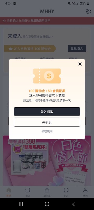 1. Scarica l'app per la prima volta per ottenere un credito di acquisto di $ 100 + 50 punti di iscrizione.