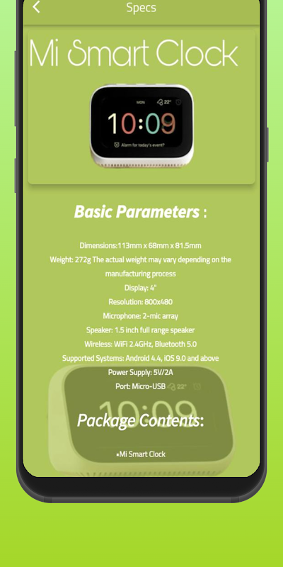 Contenuto dell'app Mi smart clock: -