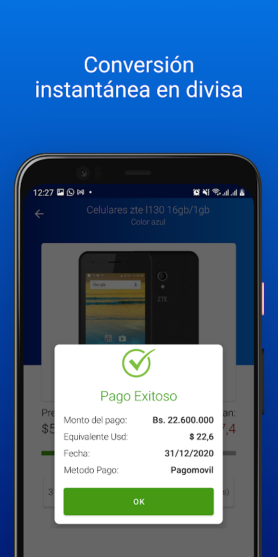Acquista oggetti con piccoli pagamenti, cambia i tuoi Bolivar in valuta all'istante!