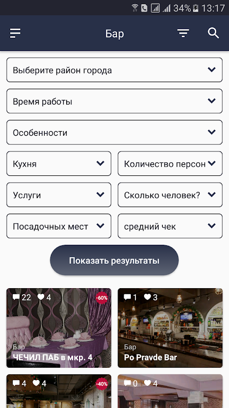 * Удобный фильтр поможет выбрать ресторан или заведение по вашим предпочтениям.