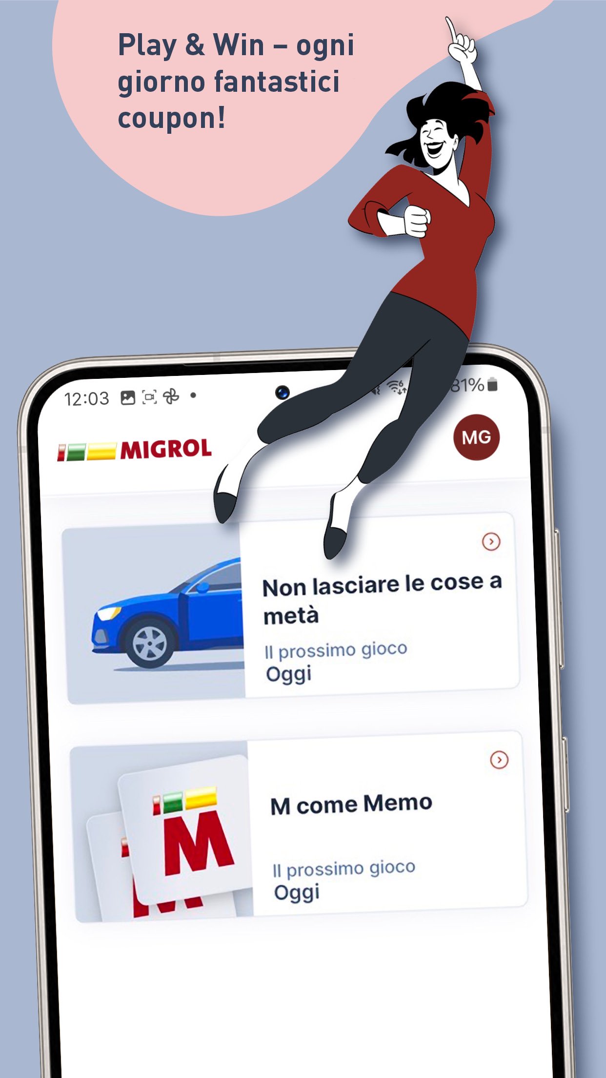 • Guadagni interessanti coupon e vantaggi con il gioco «Niente mezze misure» o il gioco «Memory». Tenti ogni giorno la fortuna.