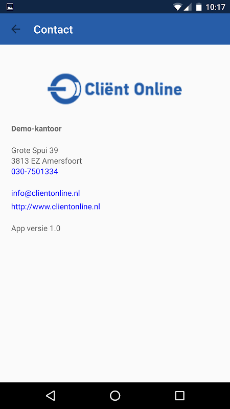 In de app ziet u de contactgegevens van uw accountants- of administratiekantoor.