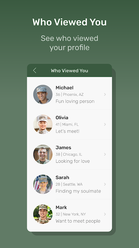 Feed delle corrispondenze: scopri single militari e nuovi amici nelle vicinanze