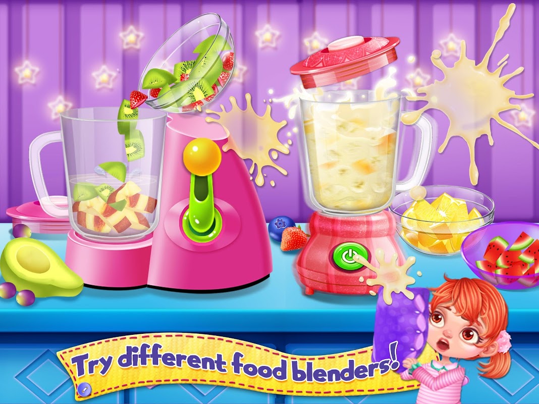 -Tons of realistic cooking tools to play: knife, ice cube molds, freezer, food blenders, cups, cream machine and so much more