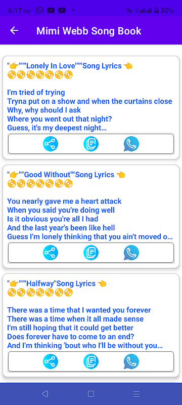 Questa è una delle più popolari app per libri di testi di canzoni di Mimi Webb.