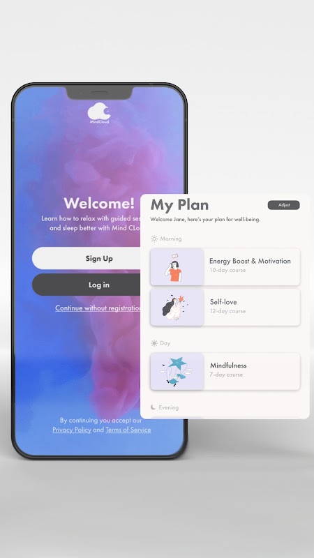 All'interno della nostra app, puoi seguire oltre 20 corsi di meditazione guidata e migliorare la tua salute mentale. MindCloud è qui per incorporare la consapevolezza nella tua routine quotidiana. I nostri corsi ti aiuteranno a concentrarti e rinfrescarti, imparare a rilassarti, gestire lo stress, aumentare la motivazione e molto altro ancora.