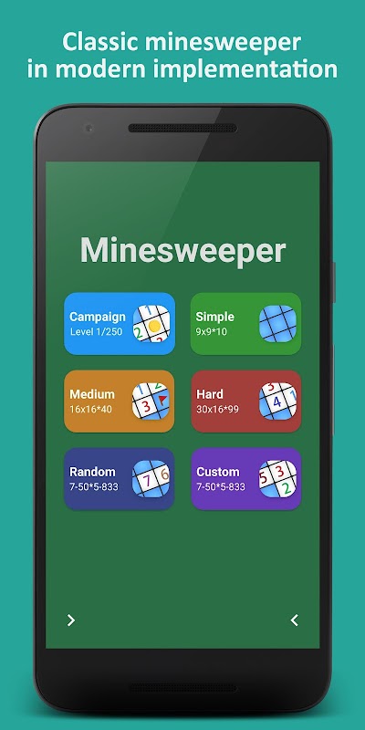 Questa è un'implementazione moderna del classico dragamine, che ha una sua campagna, dove troverai più di 200 livelli con un graduale aumento dei livelli di difficoltà. La campagna include più di duecento livelli in cui devi sgombrare le bombe dal più semplice al incredibilmente difficile e interessante, ti immergerai nell'affascinante mondo dei puzzle, superando i livelli, raccoglierai tesori che ti aiuteranno a passare in situazioni più difficili livelli.