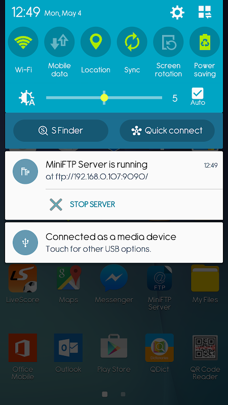 Mini-FTPServer consente di collegare al vostro dispositivo Android.