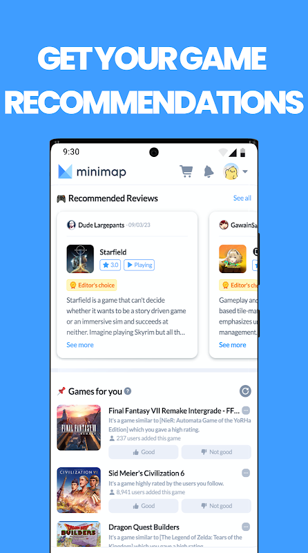 - Giochi e recensioni in arrivo: resta al passo con il tracker dei videogiochi di Minimap. Sia i giocatori su console che quelli su PC possono scoprire i giochi in arrivo, leggere recensioni approfondite di videogiochi e pianificare la loro prossima avventura di gioco. La nostra piattaforma ti assicura di essere sempre informato sugli ultimi e migliori giochi per console e titoli per PC.