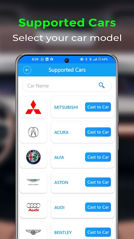 MirrorLink è un sistema che collega il tuo smartphone al display di infotainment della tua auto, consentendoti di controllare app e funzioni direttamente dal touchscreen dell'auto. Il connettore per auto Mirror Link è un'app Mirror Link proprio come lo stile Mirror Link di Apple che collega lo schermo della tua auto al tuo cellulare con la tecnologia di mirroring dello schermo in pochi passaggi. Mirror Link Car Play ti offre una connettività veloce utilizzando lo screencast Wi-Fi senza alcun cavo. Il mirroring dello schermo Mirror Link per auto ti consente di eseguire il mirroring e utilizzare varie applicazioni dal tuo CarPlay per Android direttamente sul touchscreen della tua auto.