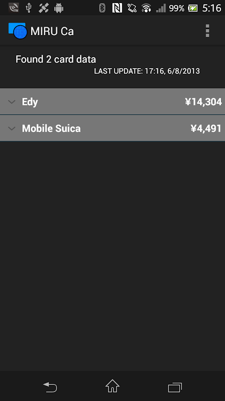 Si tratta di un'applicazione che consente di visualizzare la storia e l'equilibrio della moneta elettronica, la scheda IC sistema di trasporto (Suica, ICOCA, PASMO e altro ancora).