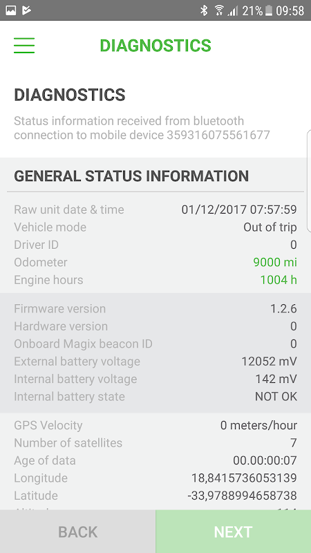 • Uscita di diagnostica, che comprende lo stato del veicolo, la versione del firmware, la posizione GPS / velocità e molto altro ancora