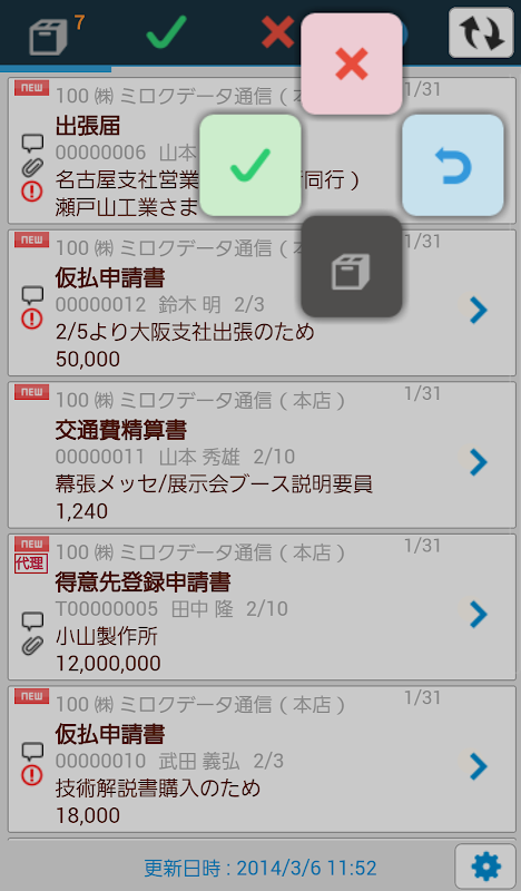 MJSのワークフロー製品における申請書の承認依頼データをかんたんな操作で決裁(承認、否認、差戻)できます。