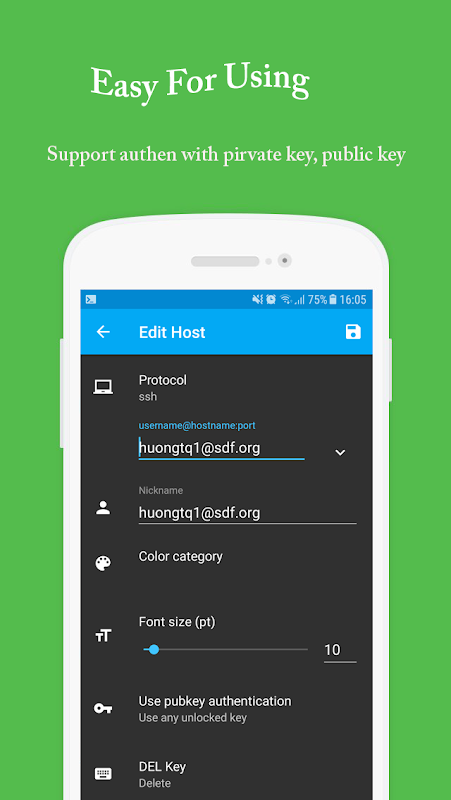 - Support ssh via private key, public key, tunnel network, pubkey authentication, ssh agent