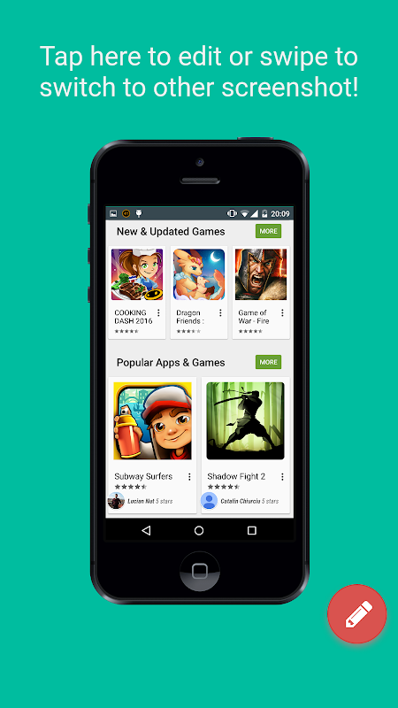 * We let you to create mobile device artworks from all your saved screenshots from your device - the default folder where the screenshots are located is /sdcard/Pictures/Screenshots
