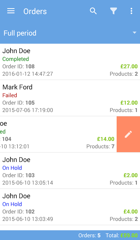& # 8226; & # 8195; Possibilità di ricevere notifiche sugli ordini effettuati durante un periodo di tempo predefinito, filtrarli per stato, cambiarli direttamente dal cellulare o dal tablet