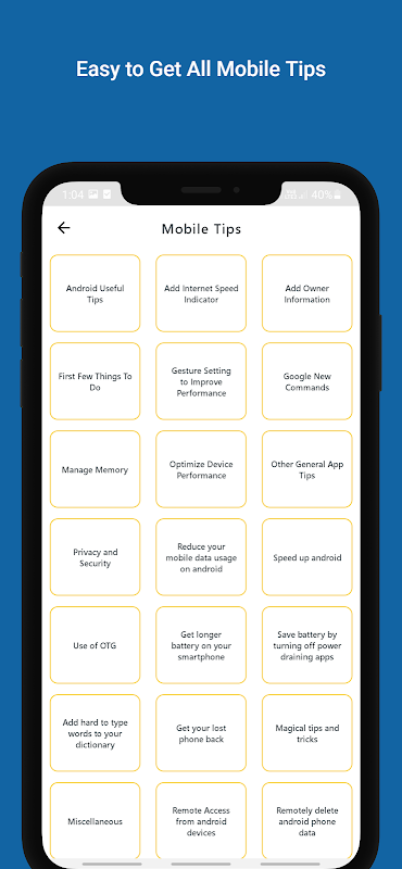 App includes secrets codes of all mobile companies and all Android mobiles. You can view tips and tricks from app to view hidden settings and information.
