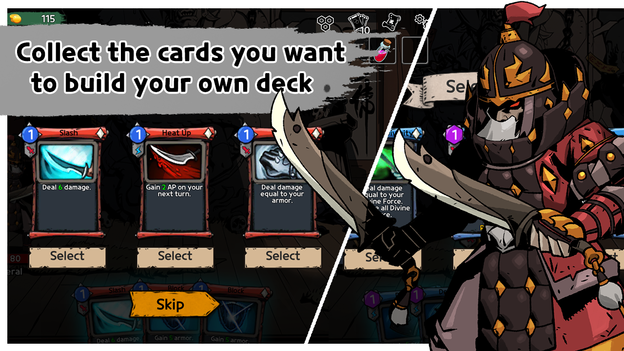 Raccogli varie carte attraverso un'avventura continua per costruire il tuo mazzo unico.