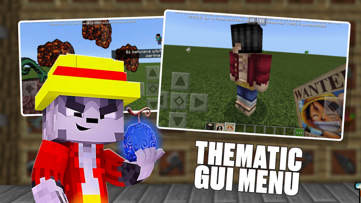 Tutti i fan della comunità degli anime conoscono Naruto e Rufy. Il mondo di gioco è meravigliosamente integrato da mod e componenti aggiuntivi dell'interfaccia utente di One Piece. Utilizzando questa app, il gioco offrirà l'opportunità di diventare un maestro del parkour 💪🏻, utilizzare vari blocchi Pocket Edition per creare e diversificare la noiosa sopravvivenza. One Piece Mod per MCPE Bedrock contiene molti mob, armi e trame di blocchi della community di Rufy. Sarai in grado di diventare tu stesso Rufy attraversando le sue avventure di vita. 🔥