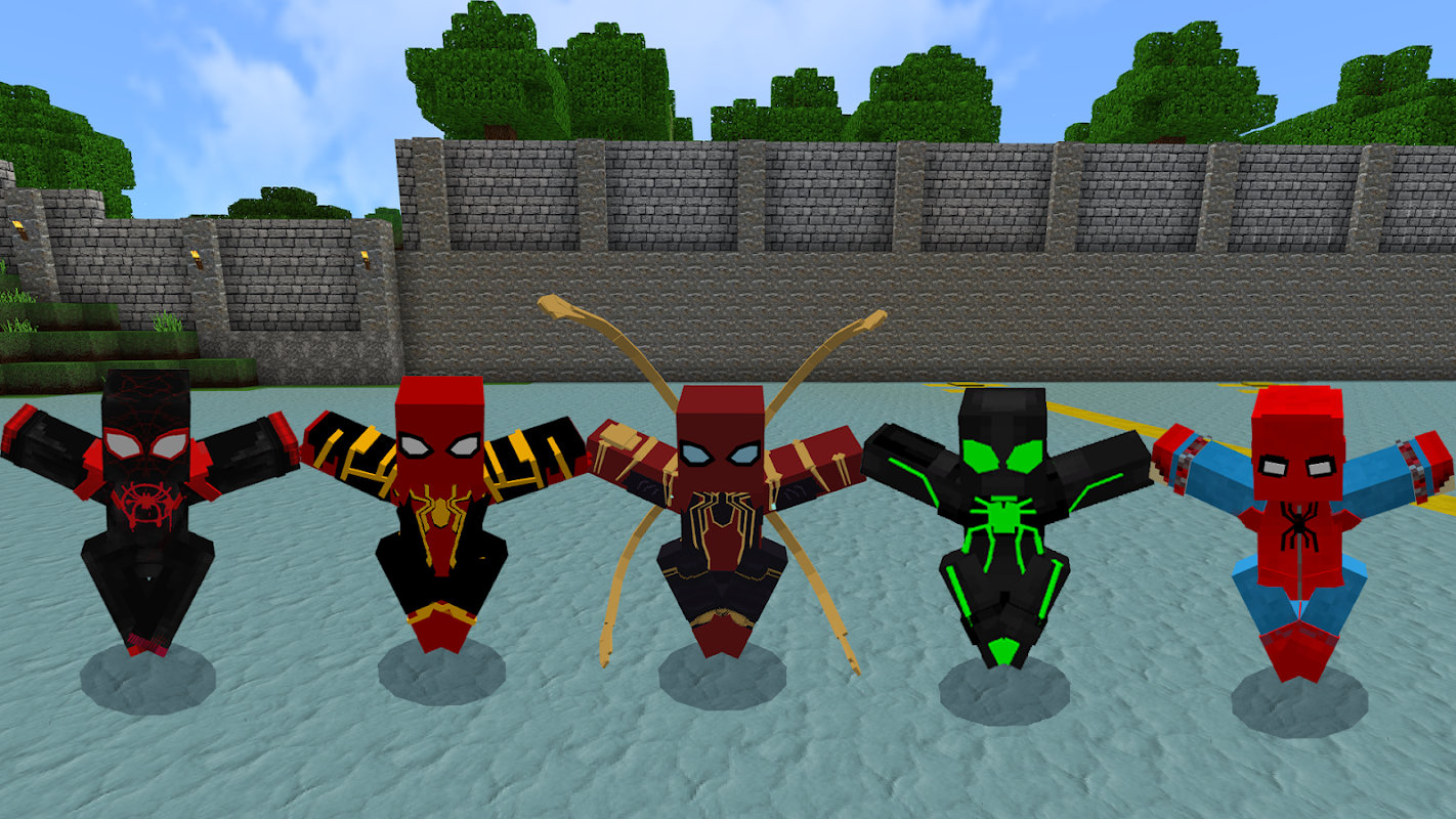In questo modo Spider-Man, avrai l'opportunità di trasferire personaggi iconici e i loro indimenticabili costumi direttamente in Minecraft Addon. Ogni costume è stato creato con particolare attenzione ai più piccoli dettagli per riprodurre fedelmente lo stile unico e unico