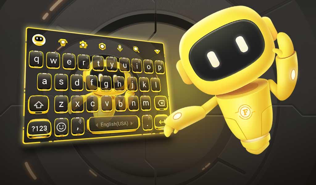 With the bright yellow and black intelligent robot on your keyboard theme, Moji brings you to the AI tech world. If you are already a Facemoji user, you might notice that Moji is on your keyboard to help you manage the toolbar icons on the latest version.