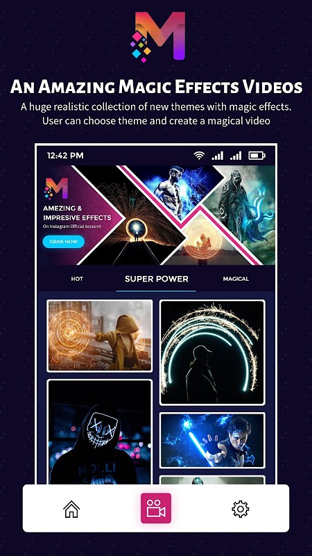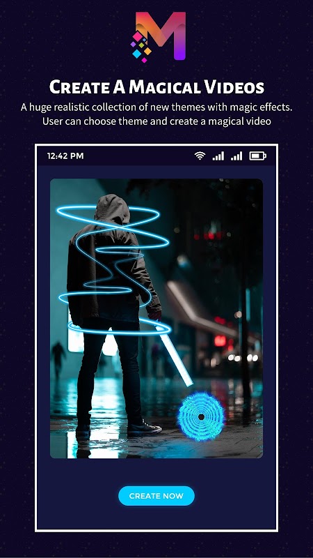 1. CHOOSE: A huge realistic collection of new themes with magic effects. User can choose theme and create a magical video. We also release to our users, if they want they can customize the video using their favorite magical effects.