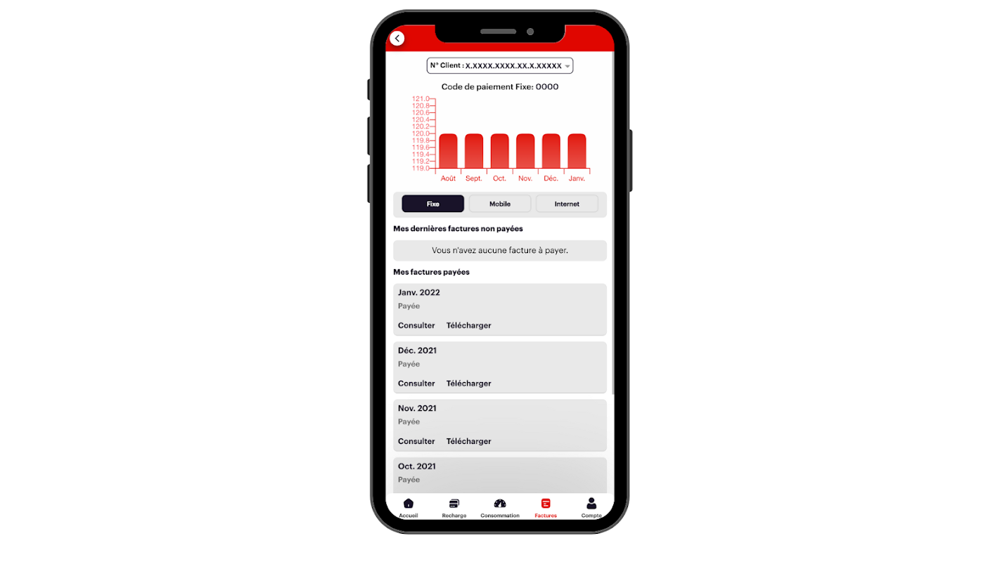 Con l'applicazione “Mon Espace MT”, gestisci le tue linee in movimento dal tuo smartphone o tablet. L'applicazione “My MT space” ti permette di avere una visione complessiva del tuo conto in tempo reale e con un semplice click.