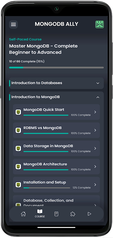 Scopri MongoDB Ally, la tua app tutorial MongoDB all-inclusive per sviluppatori esperti e studenti curiosi. Immergiti nei database NoSQL, esplora le caratteristiche uniche di MongoDB e padroneggia i principi di archiviazione dei dati attraverso la nostra vasta libreria di tutorial. Sperimenta l'apprendimento pratico con esempi ed esercizi interattivi, che ti guidano nell'implementazione di MongoDB in scenari reali. Con l'accesso offline e il tema chiaro/scuro, puoi imparare MongoDB sempre e ovunque. Scatena tutto il potenziale dei database NoSQL: scarica MongoDB Ally oggi stesso!