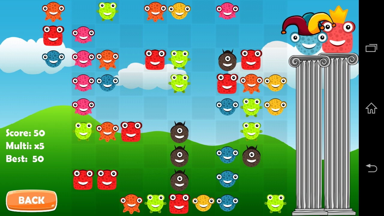 Monster lines is a remake of classic lines game. Match 5 monsters of same color in any direction to clear. Connect more to earn high multiplier and compete online with friends.