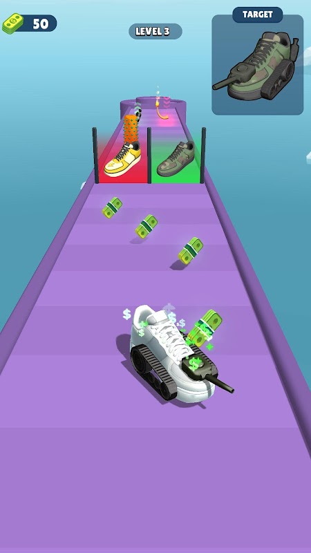Inizia il tuo viaggio con un paio di scarpe basic e guardale evolversi in design spettacolari e incredibilmente fantasiosi. Ogni cancello che attraversi porta con sé un nuovo stadio di evoluzione, sbloccando possibilità sorprendenti e stili accattivanti per le tue scarpe. Assisti alla trasformazione delle tue umili origini in uno spettacolo mozzafiato dell'evoluzione delle scarpe.
