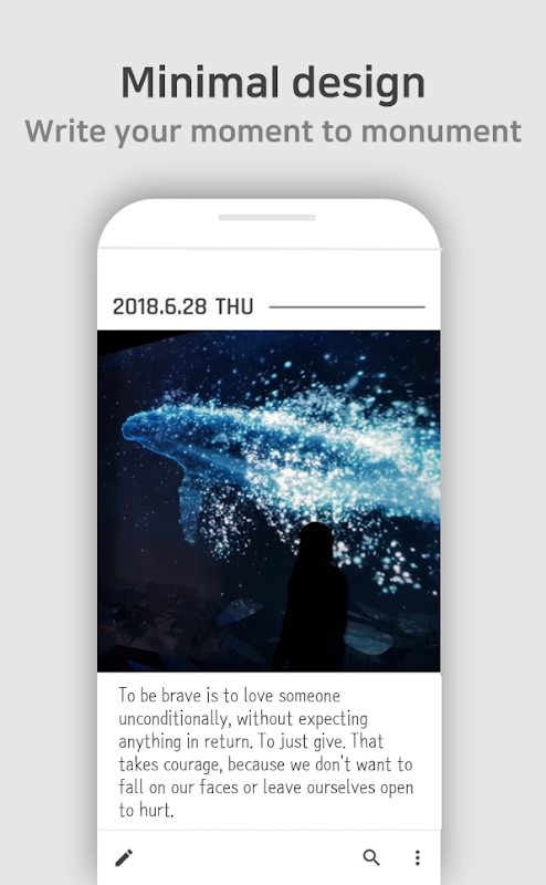 Scrivi il tuo momento di monumento. Minimal app diario disegno.