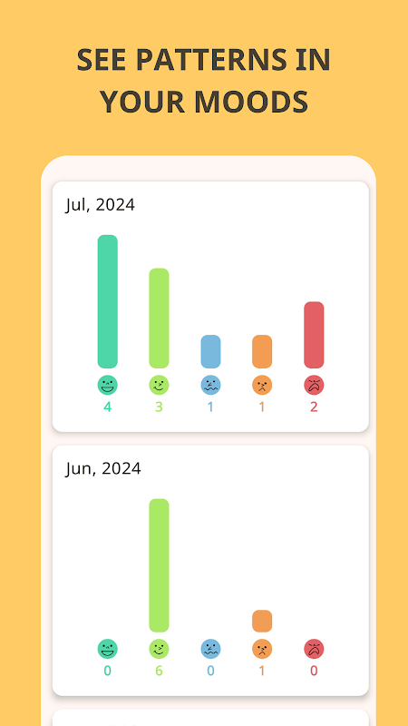Lo capirai in pochi secondi dopo aver installato l'app! Aggiungi semplicemente una nuova voce al diario selezionando il tuo umore e, facoltativamente, scrivendo un messaggio. La tua voce, con la data, apparirà nella schermata "Diario" e nelle statistiche del tuo umore.