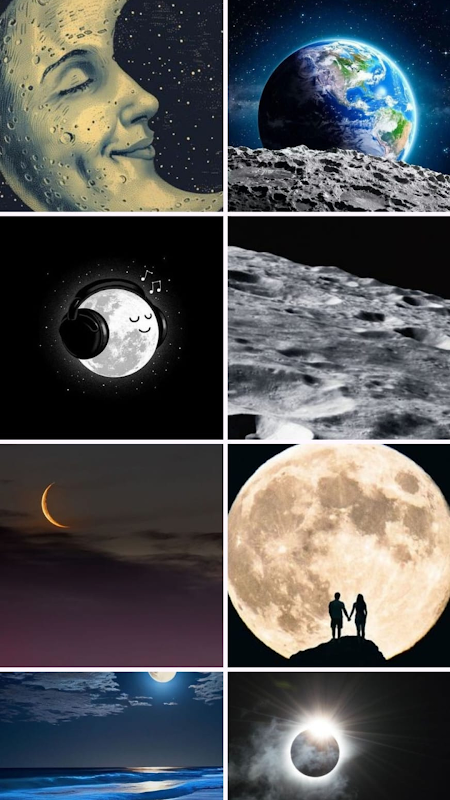 Trasforma il tuo telefono in un capolavoro con Moon Wallpaper. Che tu sia ispirato dal romanticismo della luna piena, dalla calma di una falce di luna o dalla vastità della galassia, questa app ha tutto.