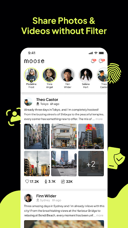 Con Moose sveliamo la vera essenza della vita, non toccata da strumenti di modifica o filtri. Diamo la possibilità ai nostri utenti di catturare momenti autentici, così come sono, non filtrati e inalterati. Niente più facciate o illusioni, solo la cruda bellezza della realtà.