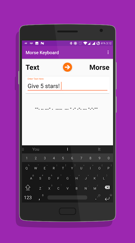 Questa applicazione dispone di una tastiera in cui i tasti sono A, B, C e così via, ma quando fai clic su di essi, apparirà il codice Morse corrispondente a quella lettera! Quindi ora non c'è bisogno di convertire il testo e quindi inviarlo!