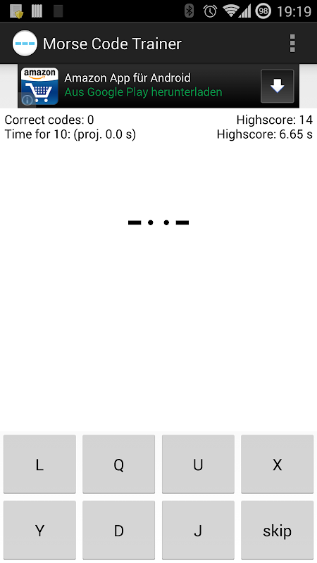 Morse Code Trainer will show and play you random letters in morse core and you have to recognize them. If you're correct, the next morse code appears. If you make a mistake, just try again. It's a very simple but practical tool.