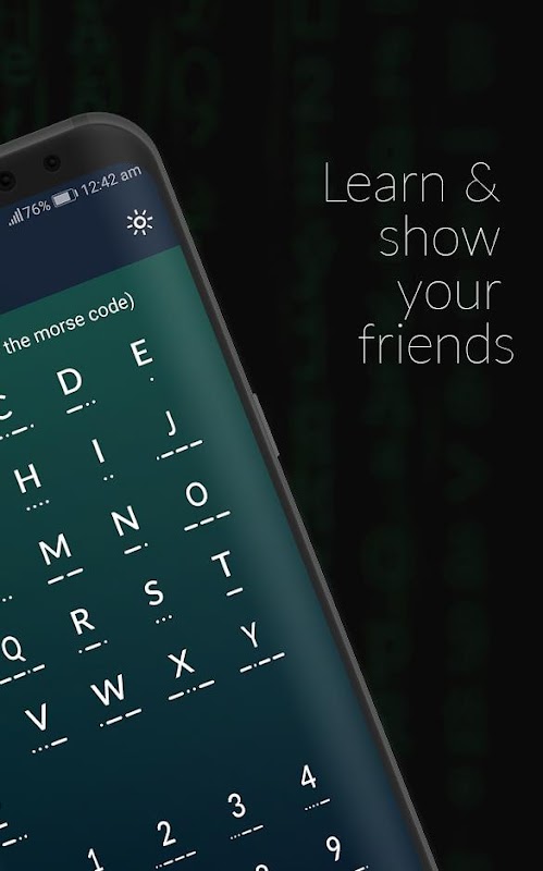 Puoi facilmente creare un codice Morse e inviarlo ai tuoi amici e familiari o riceverne uno tramite i segnali audio e luminosi. È facile, divertente e molto utile quando devi comunicare segretamente con qualcuno