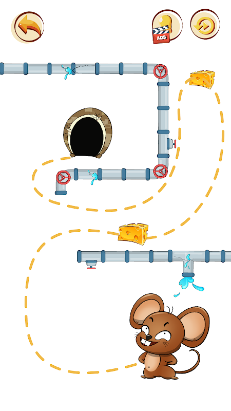 In Mouse Rush: il tuo compito è aiutare il topo a prendere il formaggio e sfuggire all'inseguimento del gatto per tornare sano e salvo alla grotta. Traccia una linea per collegare il topo al formaggio e torna alla grotta.