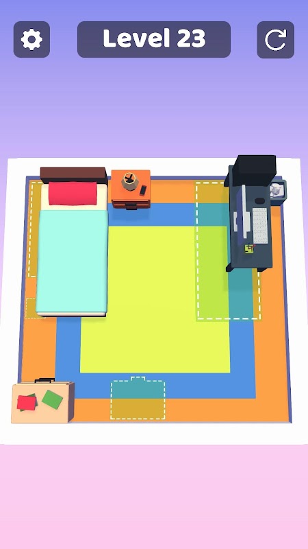 Complete the levels of each puzzle by figuring out a pattern to place the furniture in a way so it can help other furniture move to their rightful positions.