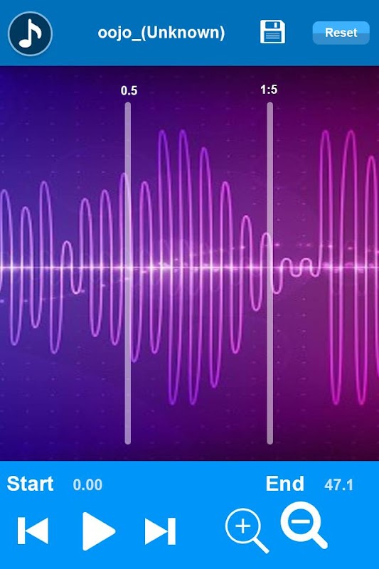 ♪ Touch to adjust the ringtone by starting and ending location.