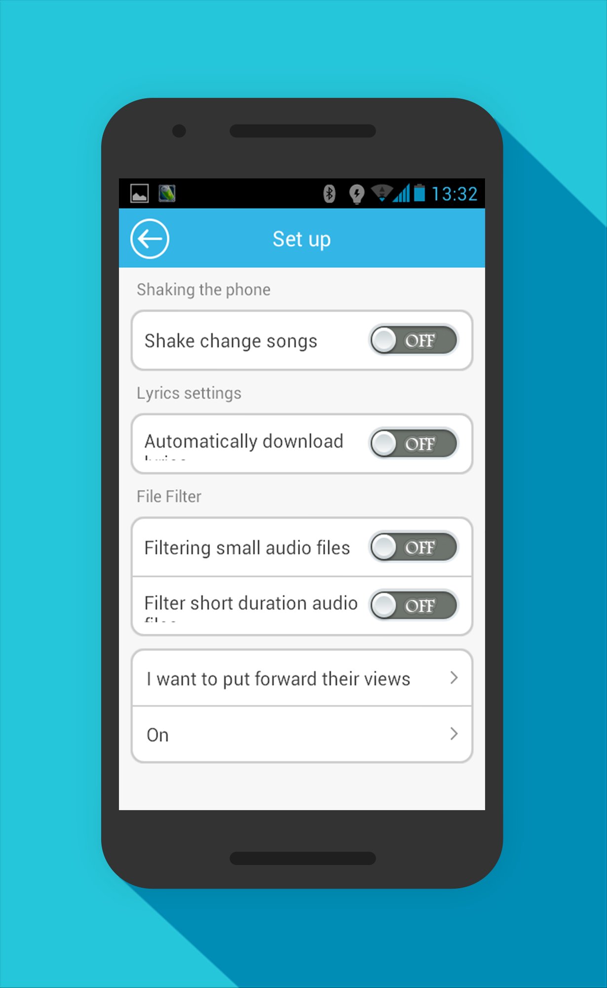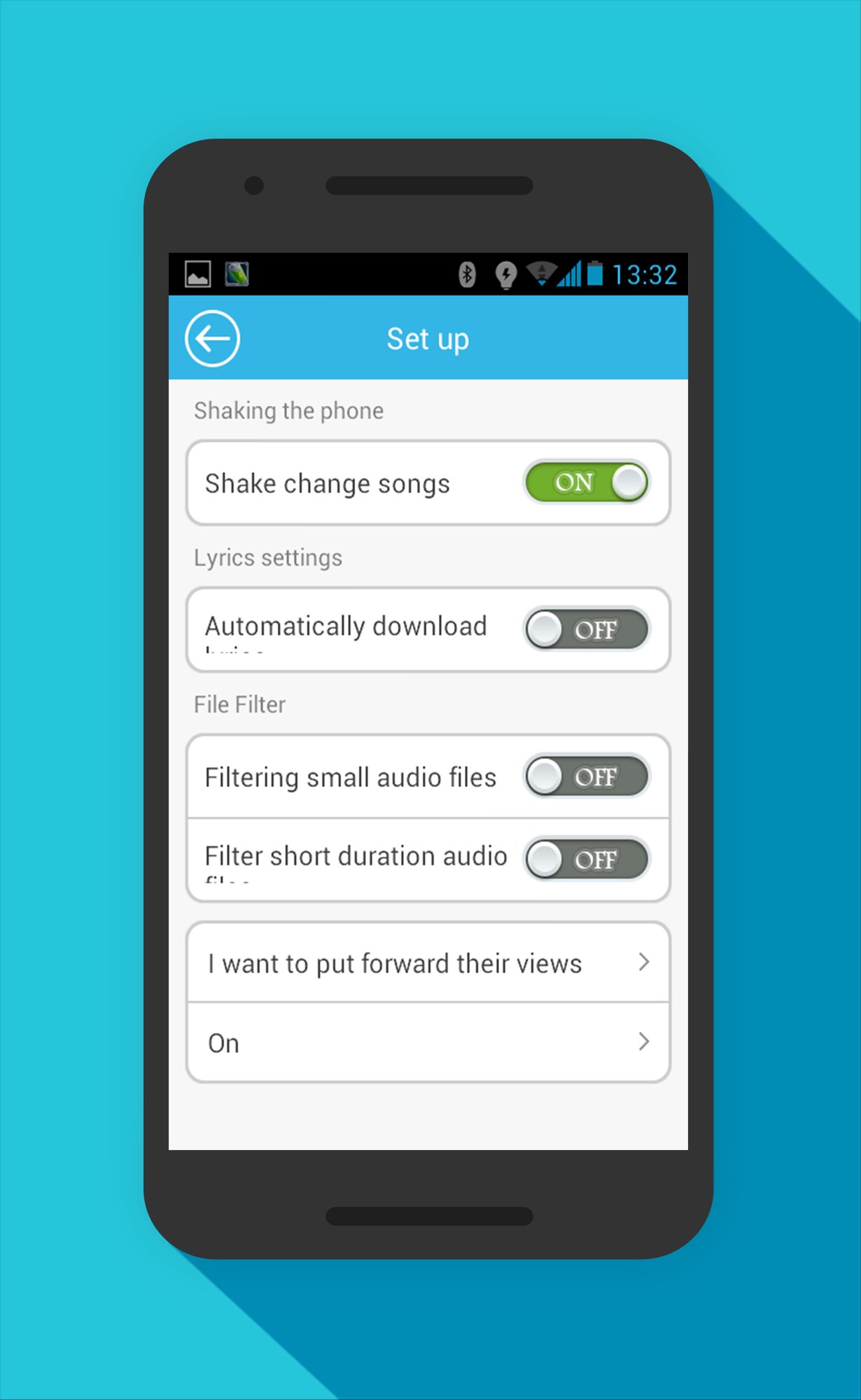 - shake to change songs