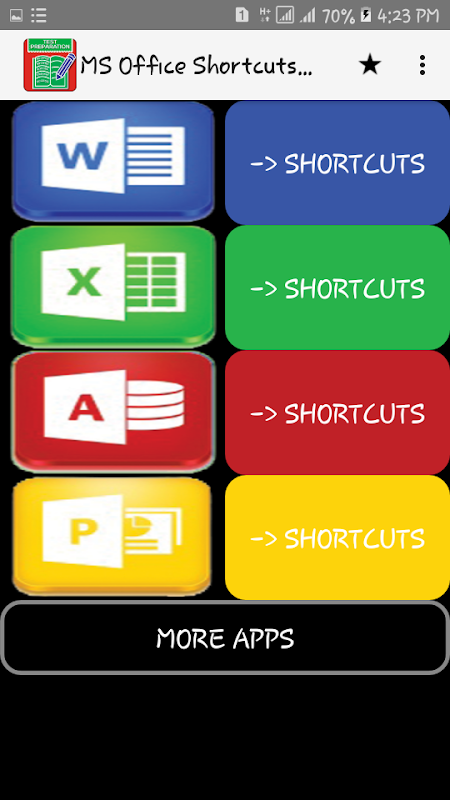 MS Office MCQs and Shortcuts is Offline app to learn MS Word, Excel, PPT, ACCESS