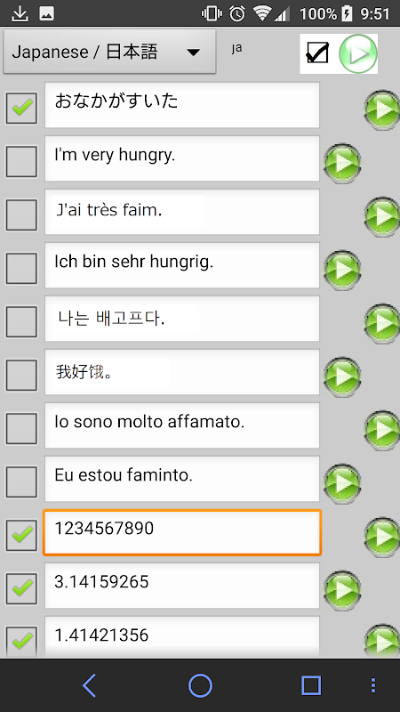 Se premi il pulsante play in alto, quindi riproduci tutta la frase selezionata.
