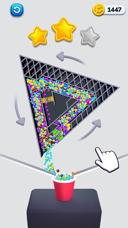 Gira la ruota labirinto a destra o a sinistra per far cadere le palline nel bicchiere.