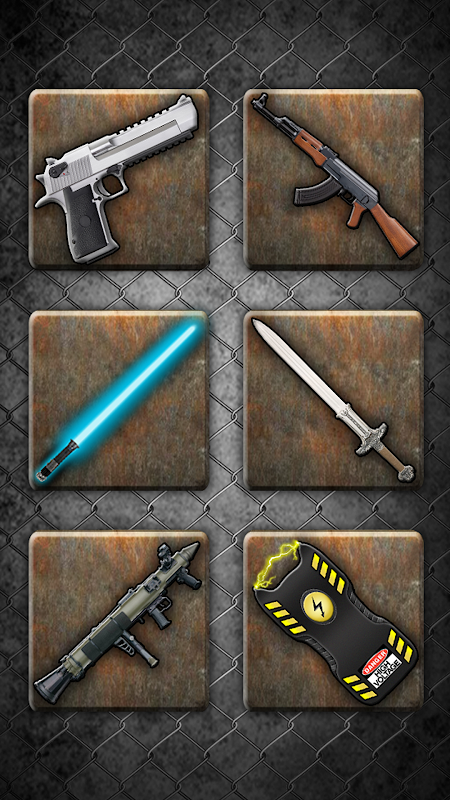 Con le pistole potrai scegliere tra armi antiche, automatiche, pistole laser e silenziatori, ognuna con un suono unico. Scuoti il dispositivo per scattare e vedrai come si attiva la luce della tua torcia, così come la vibrazione. Se non ti piace, puoi disattivarlo nelle opzioni dell'applicazione.