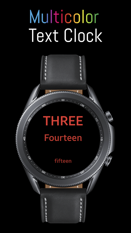 Il quadrante Orologio con Testo Multicolore è un quadrante Wear OS.