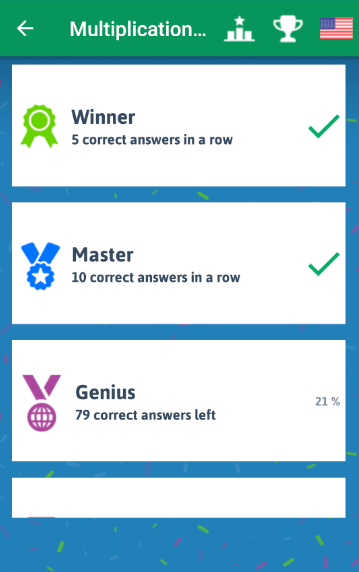 In this math game, there are quizzes and tests to improve your skills, measure your progress and stay on track to achieve your goals. Take on the challenge and put your brain and your math skills to the test.