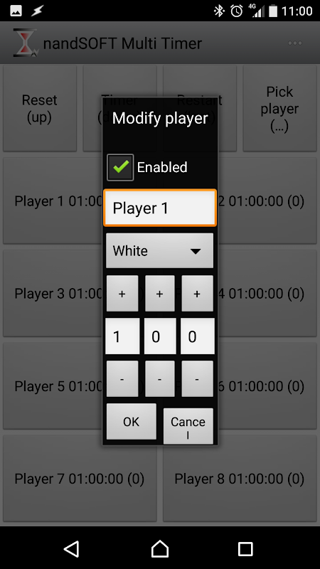 Premere a lungo un pulsante per modificare il nome, il colore e il tempo di un timer.